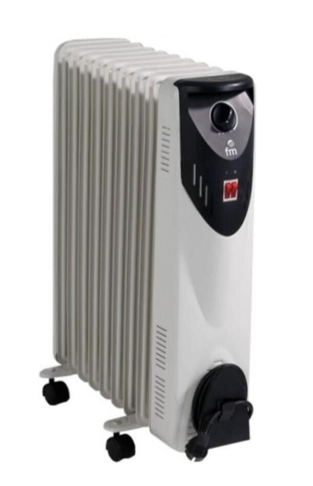 El radiador de aceite de 1500 vatios FM BR-15 es uno de losradiadores de aceite más fiables. Incluye siete elementos muy potentes que calientan rápido y con eficacia, incluso habitaciones muy espaciosas. Cuenta con un termostato que regula por sí mismo los niveles térmicos e impide calentamientos excesivos.